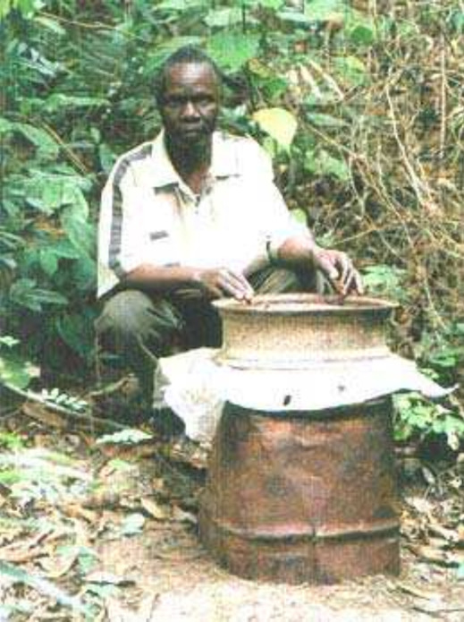 A 200-liter drum cut in half makes a good alternative beehive. The top and bottom have been removed. The drum should be sunk into the ground sufficiently to prevent ants etc. getting to the honey