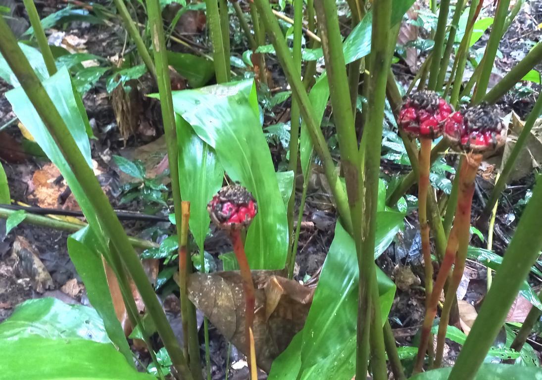 Red torch ginger (Etlingera elatior) fruits are commonly eaten by Jahai Orang Asli people in the forests of the northern State of Perak in Malaysia. These fruits are not only consumed by the forest dwellers of Perak State, but also widely over Southeast Asia. They are gathered and sold on markets at least in parts of Peninsular Malaysia, and all over Borneo and the Indonesian archipelago. Due to this wide distribution, there are various common names, like Buah Kantan, Buah Kecombrang, Ketimba, and many other local names.