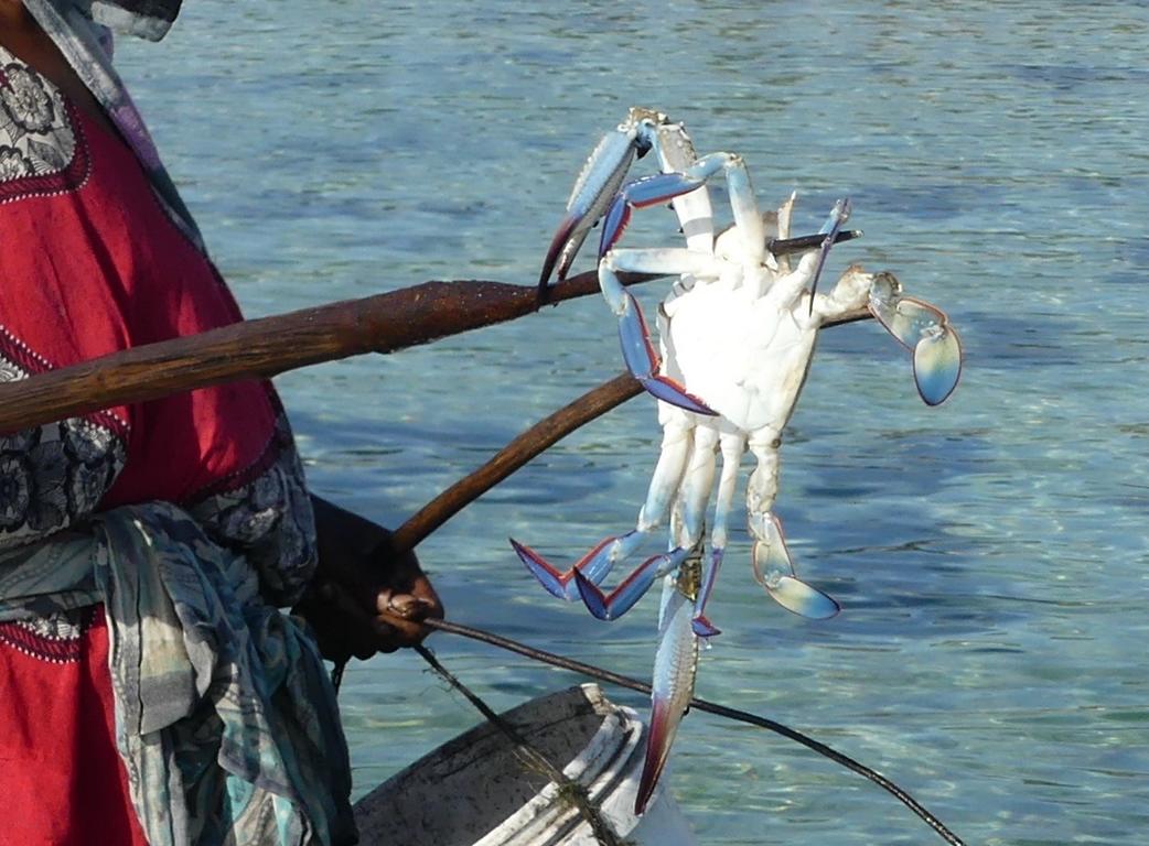 At first sight, the speared swimming crabs at Michamvi, near Pingwe, seemed to be common Blue swimming crabs (Portunus pelagicus). Closer inspection, however, revealed that these were another species, called ‘African blue swimming crabs’ (Portunus segnis).